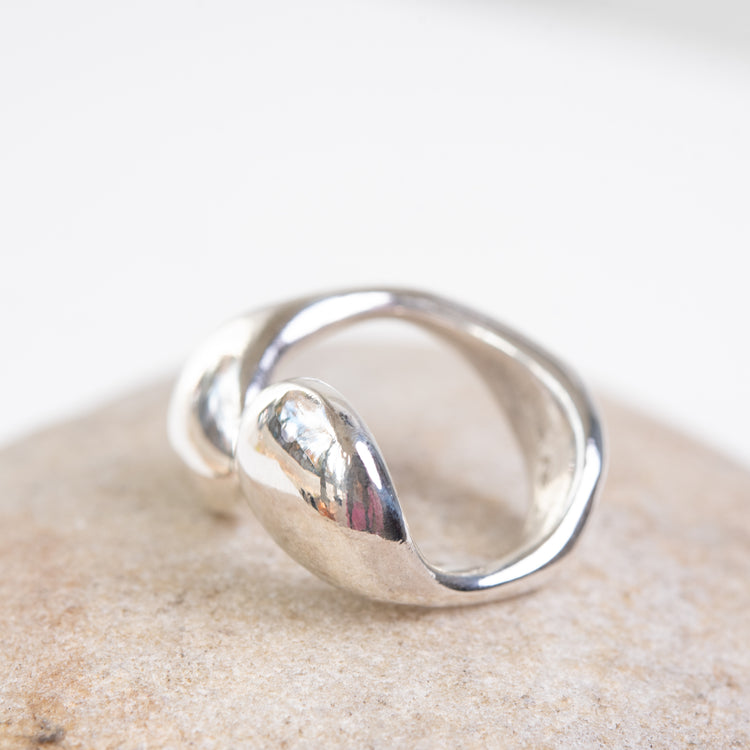 Deeply rooted in modern Milanese design, Monica Castiglioni creates stunning organic pieces in solid bronze and sterling silver. The Bombati 07B is an elegant medium sized ring with a clean sense of simplicity and proportion.  Like good leather, the work patinas beautifully and ages gracefully and feels very organic and grounding on. All her work is nickel free. Substantial, modern/ primitive sculpture you get to wear. We can't get enough!