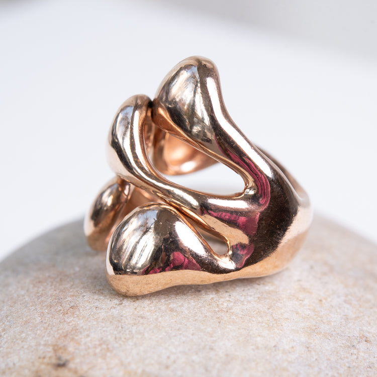 Deeply rooted in modern Milanese design, Monica Castiglioni creates stunning organic pieces in solid bronze and sterling silver. The Bombati 07D is a substantial ring, but made very comfortable with soft rounded edges. Like good leather, the work patinas beautifully and ages gracefully and feels very organic and grounding on. All her work is nickel free. Substantial, modern/ primitive sculpture you get to wear. We can't get enough!
