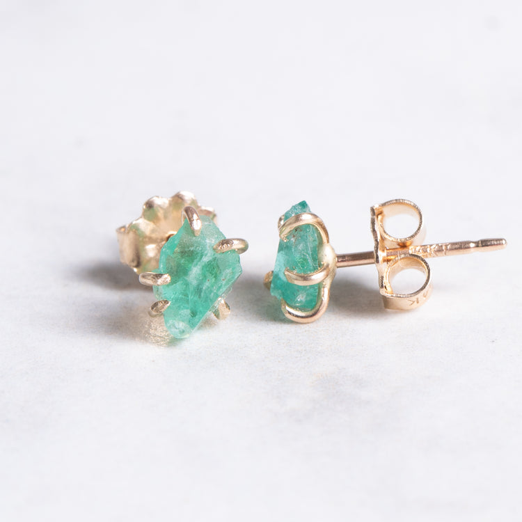Variance Hand Cut Zambian Emerald & 14k Gold Stud Earrings