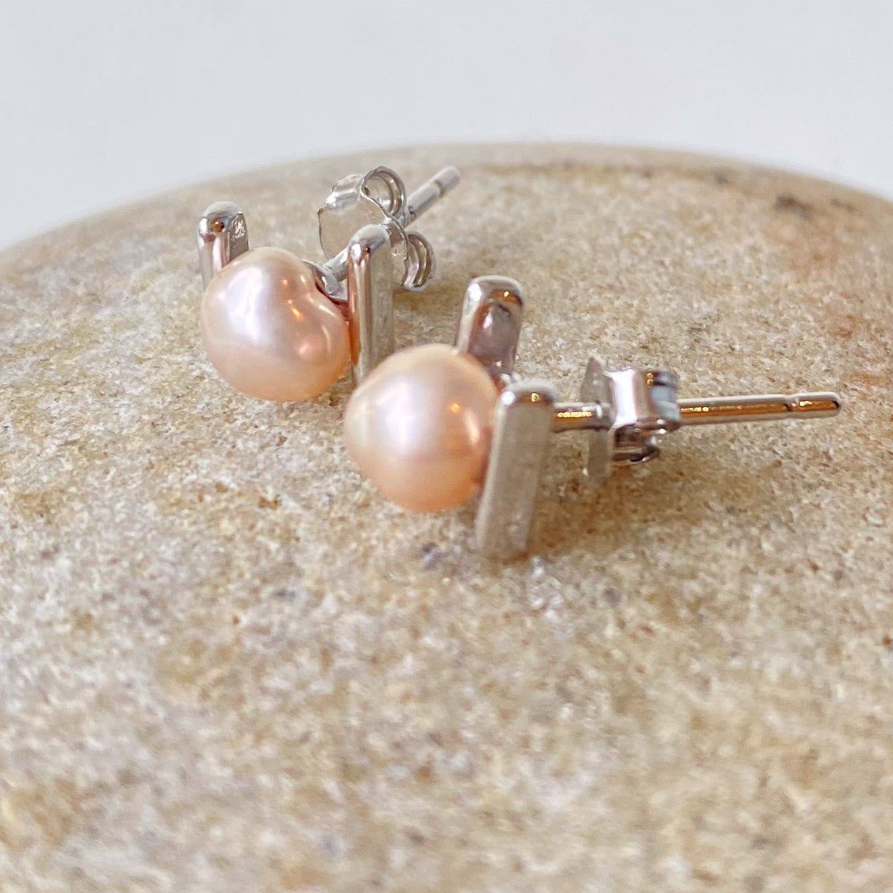 Featuring a simple, modernist design the Senju earring features a luminous Lake Biwa pearl sandwiched between slim sterling silver bars.