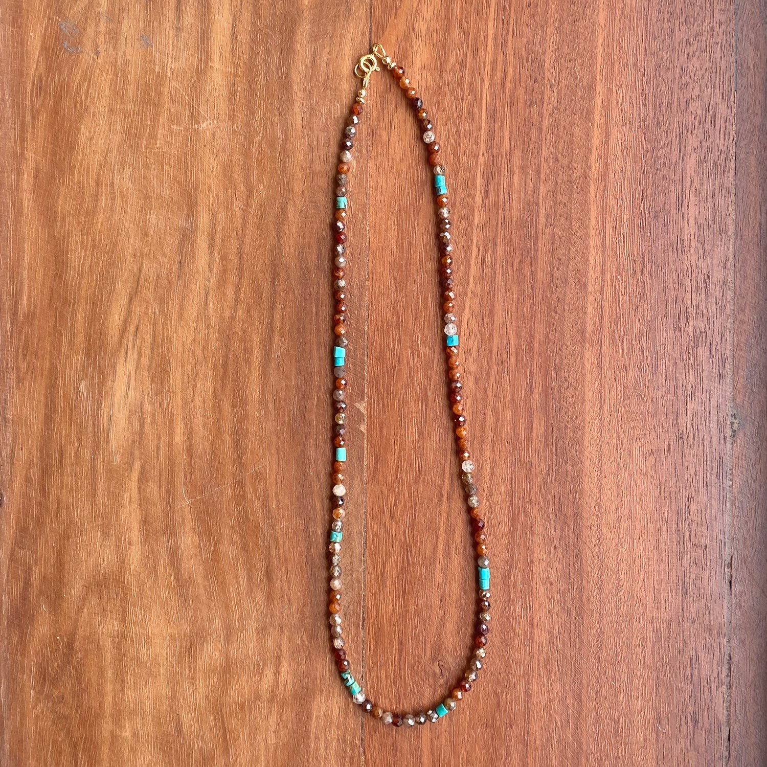 Stone Cache Zircon, Hessonite Garnet & Turquoise Gemstone Necklace