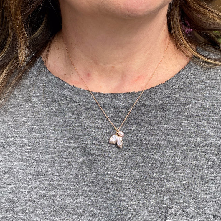 Authentic Lake Biwa pearls are prized for their exceptional luster and distinctive shapes. The Mizumi Wings necklace features two distinct pearls, one evoking wings into a minimal and modern design. 18k rose gold chain is 17" but can be made shorter by squeezing silver ball and pulling on chain. So pretty on.