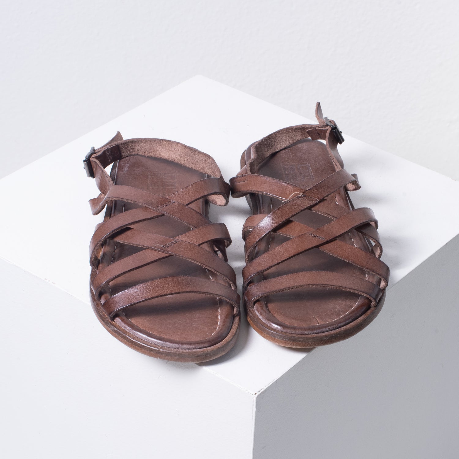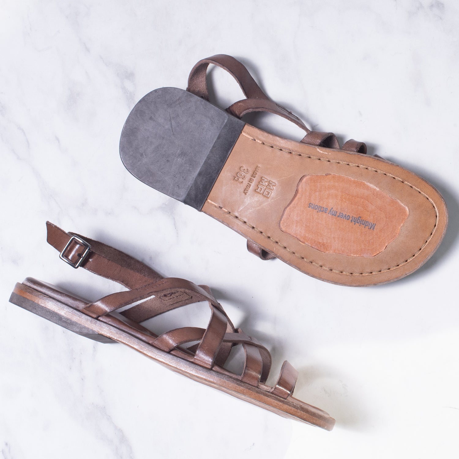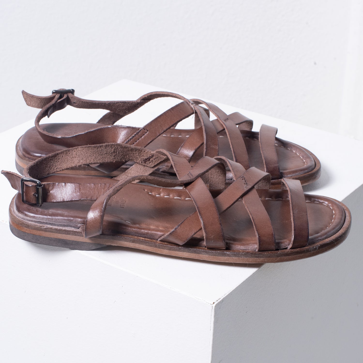 A scrappy sandal with a vintage vibe and thoughtful details. Cushy insole and just over a .25" stacked heel make these feel not too flat like the others out there. Adjustable ankle strap. Your new Summer staple. Easy straight fit.