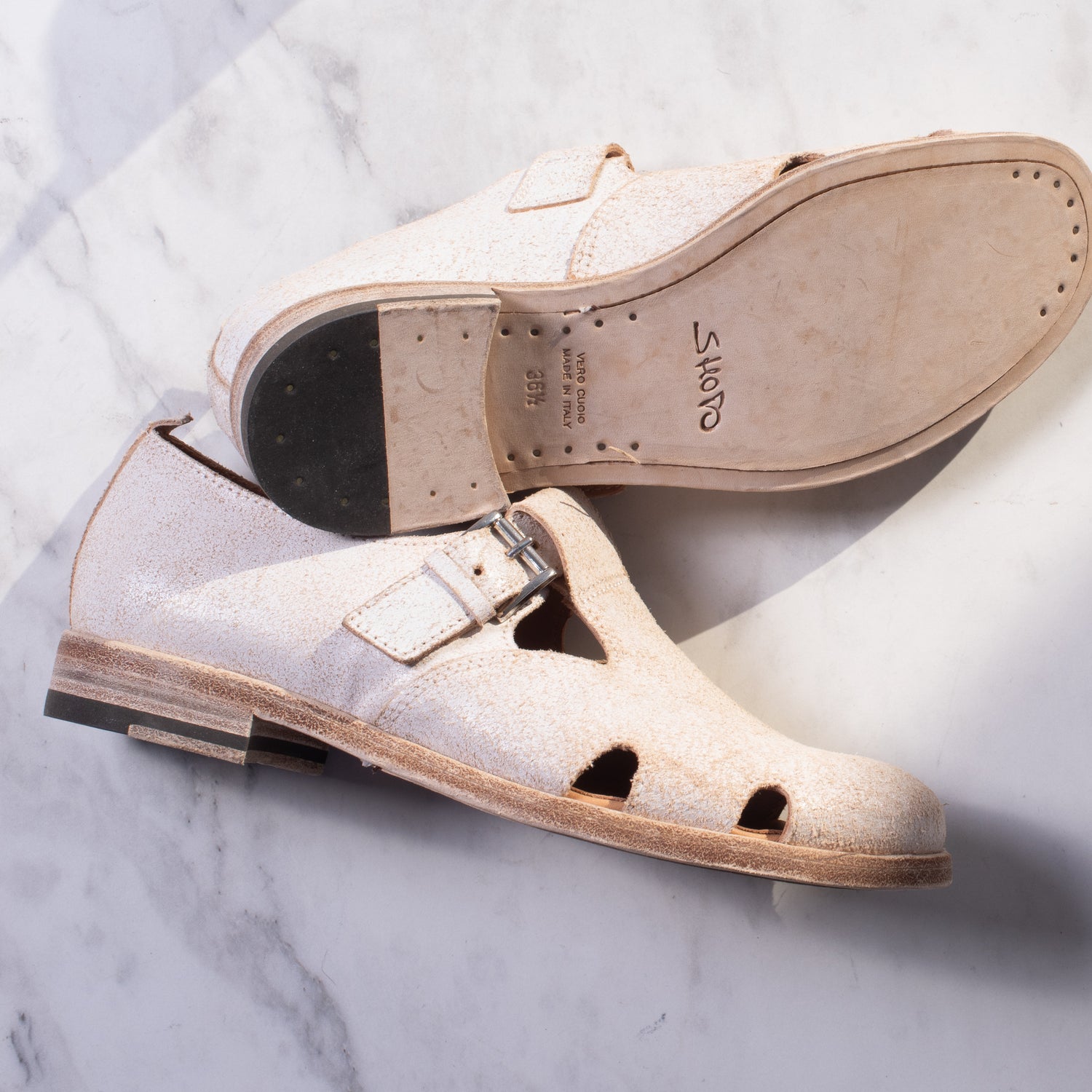 Shoto Buckle Flat (distressed cream)