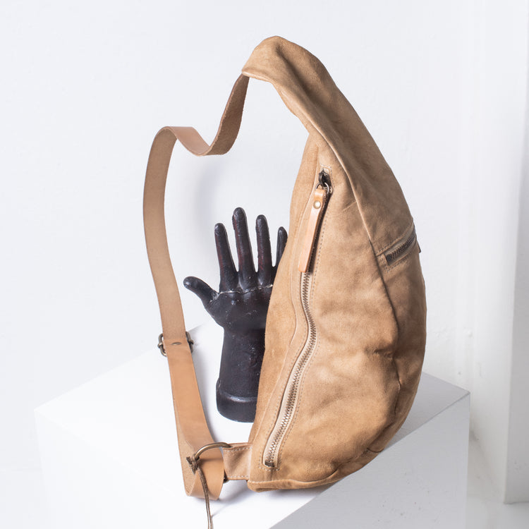 A shop favorite lightweight and versatile sling bag featuring Shoto's signature washed and irregular toned leather. Zip entrance with interior open pocket. Second zipped exterior pocket and adjustable shoulder strap. Measures approx 17"L, 8"W and 4"D