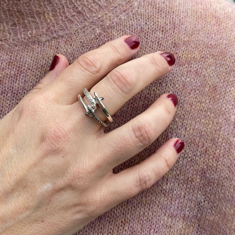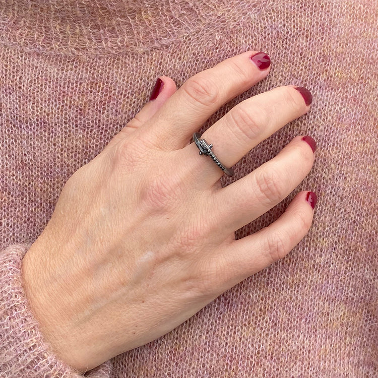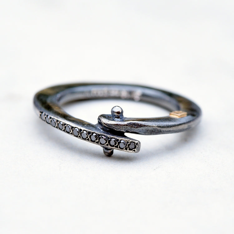 Rosa Maria Sayuri 2 Oxidized Silver Ring w/Black Diamonds