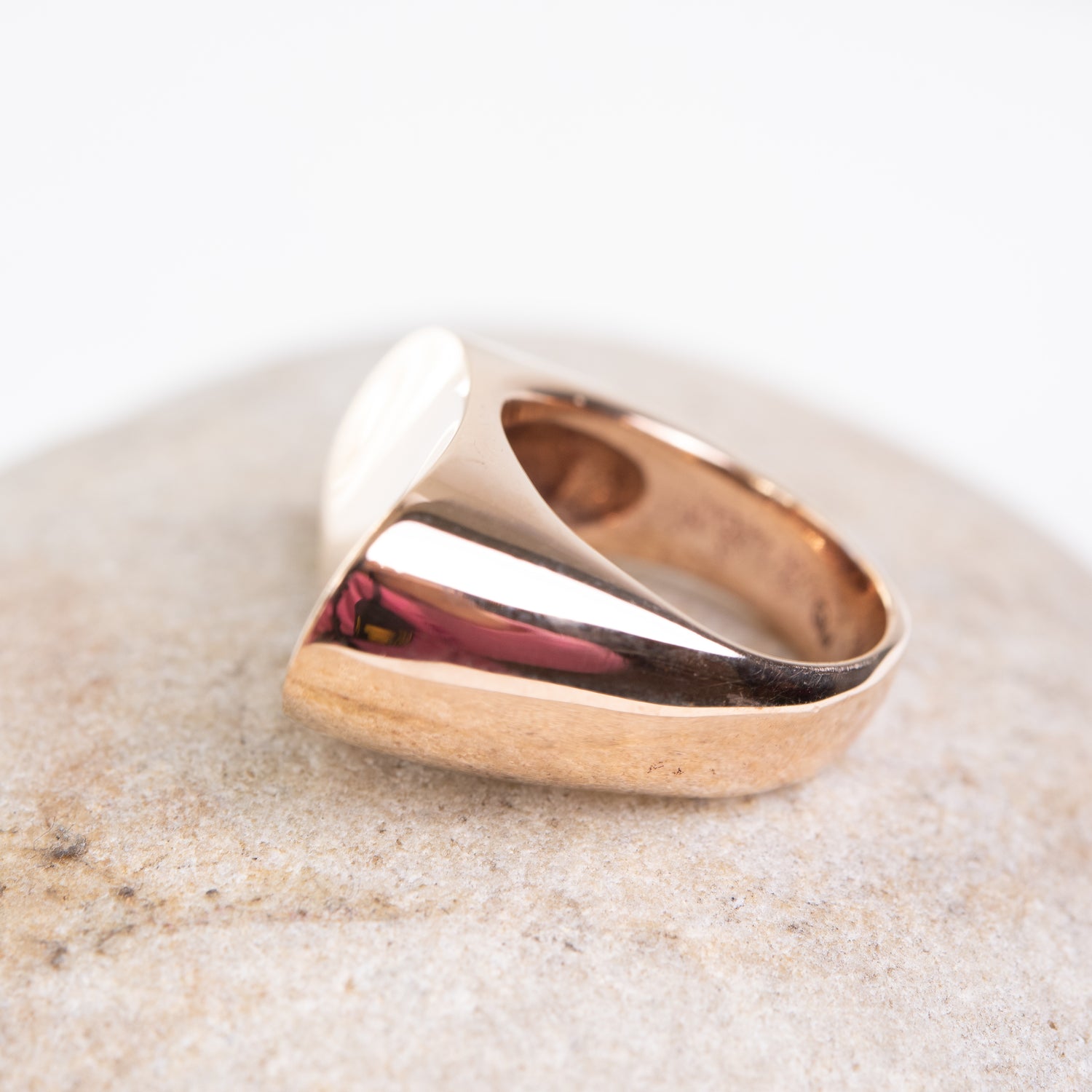 Deeply rooted in modern Milanese design, Monica Castiglioni creates stunning organic pieces in solid bronze. The Ali is a substantial and sculptural bronze ring that reads like a piece of modern architecture.  Like good leather, the work patinas beautifully and ages gracefully and feels very organic and grounding on. All her work is nickel free. Substantial, modern/ primitive sculpture you get to wear. We can't get enough!