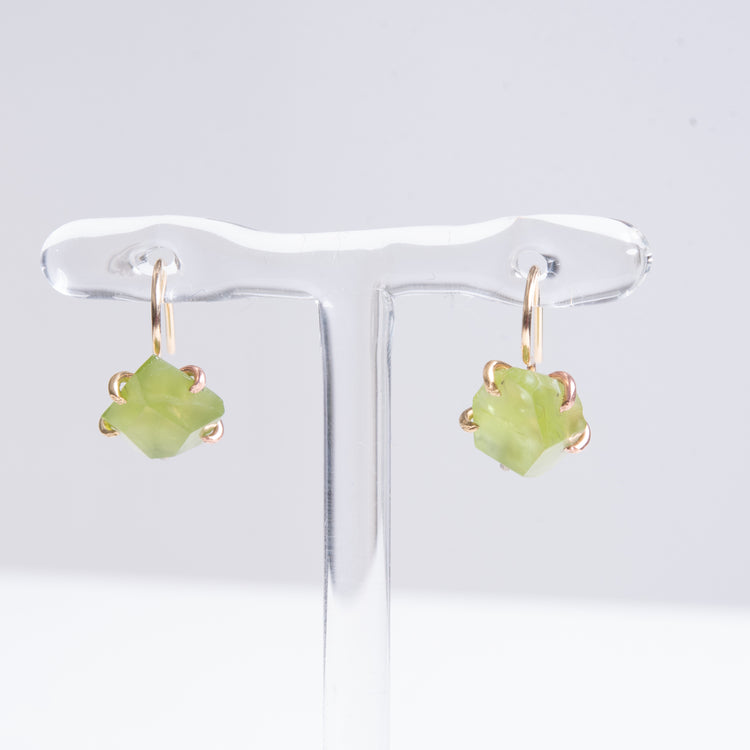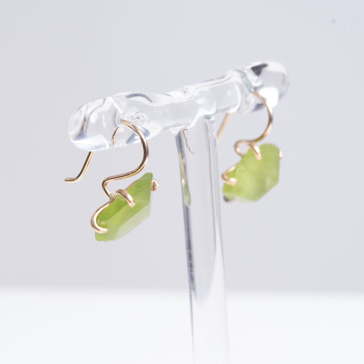 Variance Hand Cut Peridot &14k Gold Hook Earrings