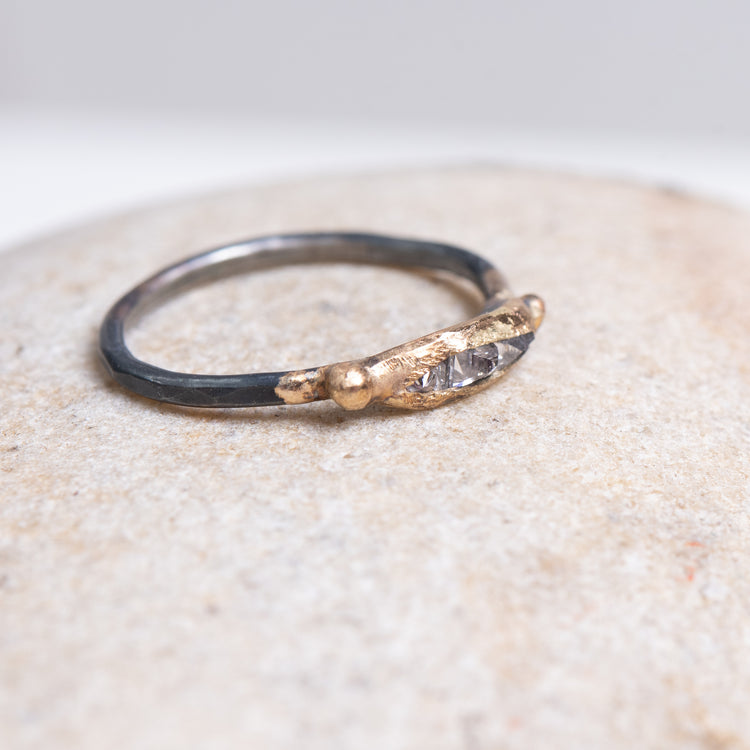 Variance Mini Baguette Diamond Ring w/Oxidized Silver